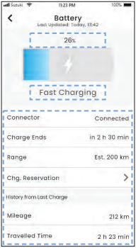 • Charge history (Date and time of charge, Charging location, Time taken to charge,